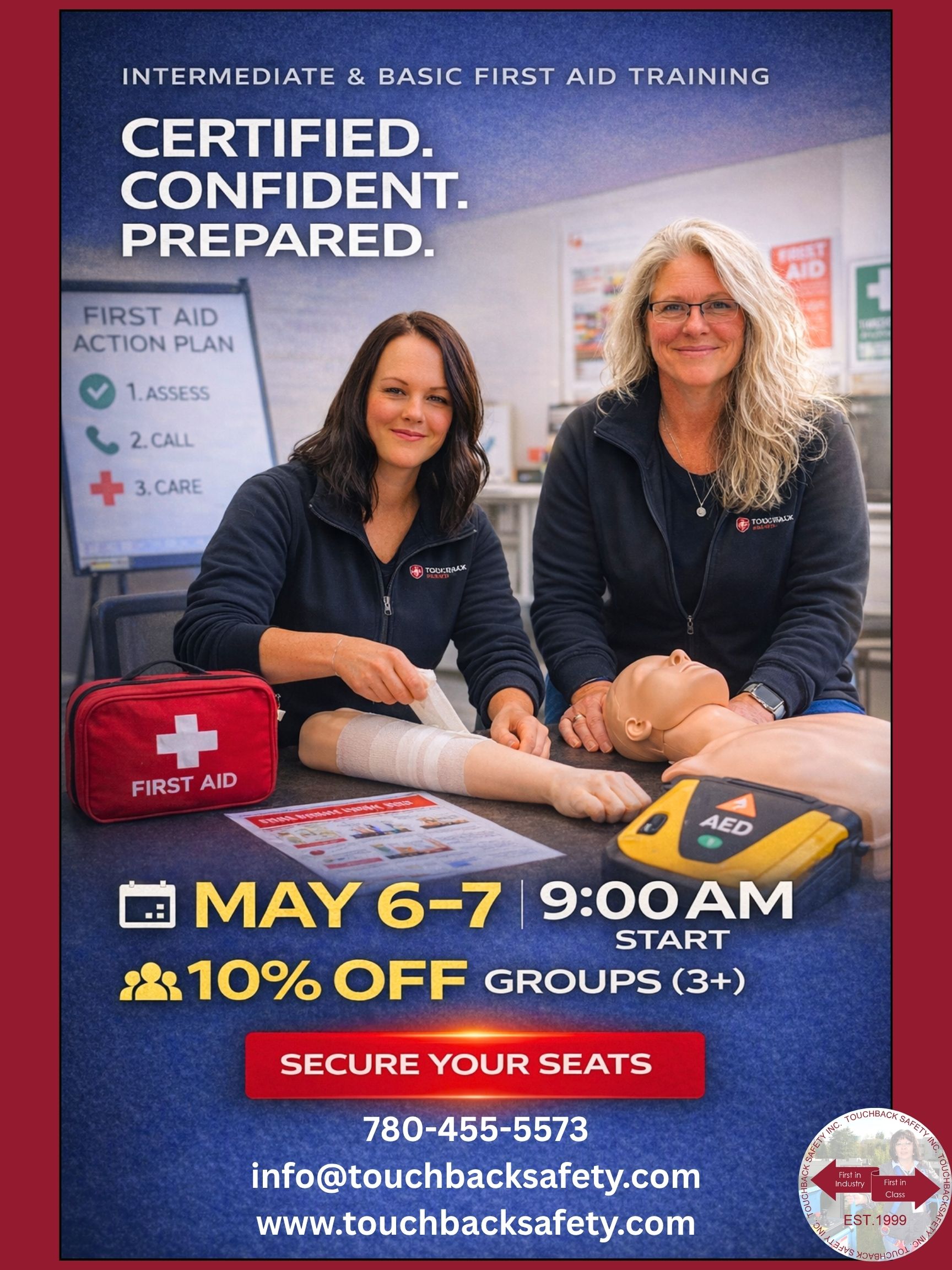 Be Ready When It Matters: First Aid Training May 6–7 Apr 8, 2026 | 0 comments May 6–7 9:00 AM Start Save 10% when booking 3+ Get certified, confident, and prepared to handle real emergencies.